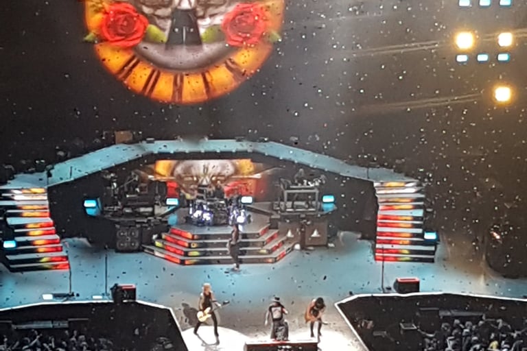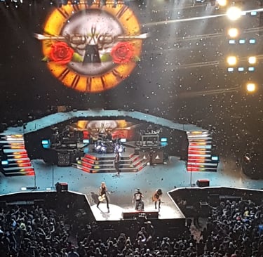Quando entrei naquele imenso ginásio, fui engolido por uma onda de energia. A multidão se espalhava em cada assento, cada espaço da pista. A vibração era palpável, como se o ar estivesse eletrificado. As luzes tremulavam, e mal cheguei ao meu lugar, Duff, o baixista, abria o show com aquele riff inconfundível de It’s so easy.