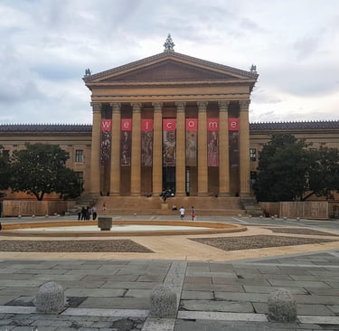 E como aperitivo para aquela noite, passei à tarde diante do Museu de Arte da Filadélfia (ou “Philadelphia” com “ph” para fazer jus àquele retorno ao clássico). A arquitetura do prédio é imponente, bela por si só. Mas eu fui lá para subir a escadaria do Rocky.