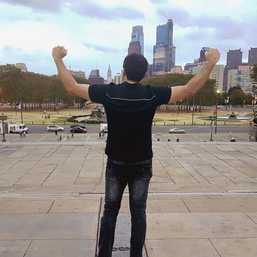 Estar naquela escadaria em algum momento da vida não era apenas fazer turismo. Era emoção pura. Ao subir os degraus, cantarolando o tema de Rocky (tã rã… rãaan…), senti o peso da trilha sonora nos meus ouvidos, como se cada passo funcionasse como um lembrete: a vida derruba, mas é você quem decide se vai se levantar.