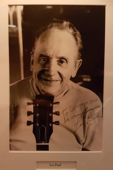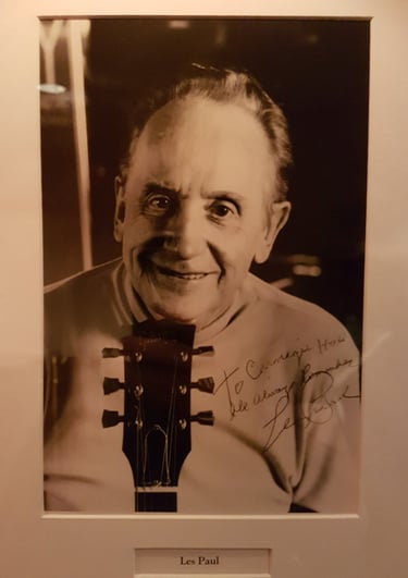Foto do homem idealizador da mítica guitarra que leva seu nome. Essa foto de Les Paul está localizada no famosíssimo teatro nova-iorquino Carnigie Hall