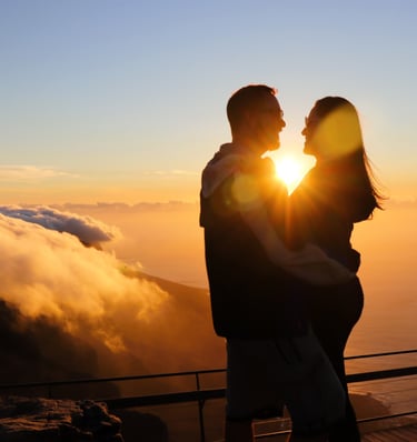 6- Casal ao Entardecer (Table Mountain) – Conecta emoção, vínculo humano e a magia dos momentos compartilhados em viagens.