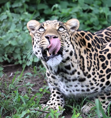 4- Leopardo Lambendo os Lábios – Uma captura rara que transmite intensidade e a beleza da vida selvagem.